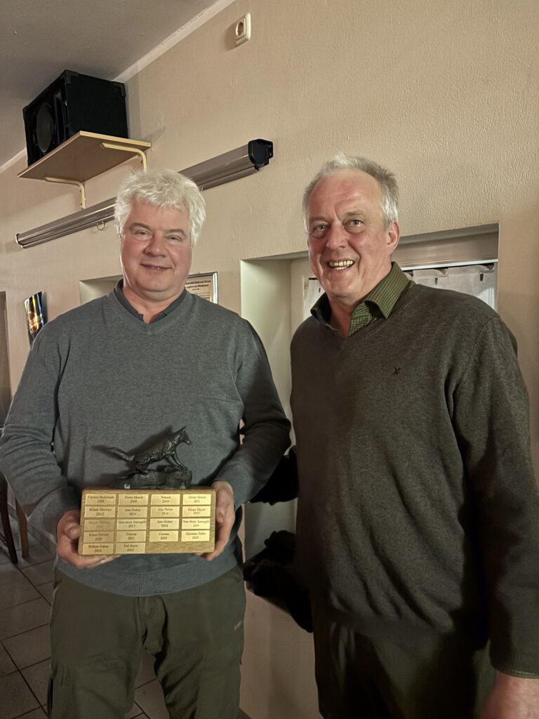 Traditionelle Fuchs- und Krähenwoche 2025: Den Pokal 2025 übernahm Jost Aurin von Willem Euhus. Gratulation und Waidmannsheil!